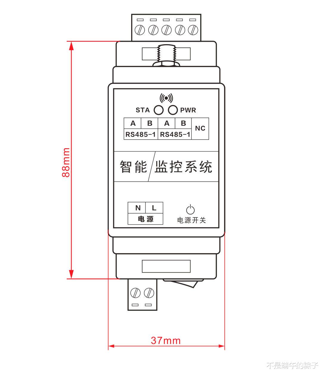 面板嵌入式安装。外形尺寸:88mm*37mm*59mm。