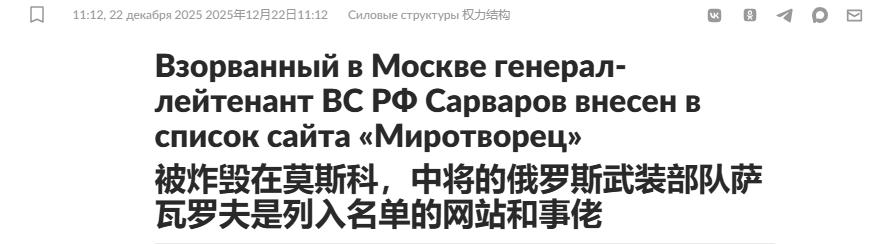 值得注意的是,瓦罗夫遇害后不到几个小时,乌克兰“和平使者”(Myrotvorets)网站就将状态更新为“已清除”。