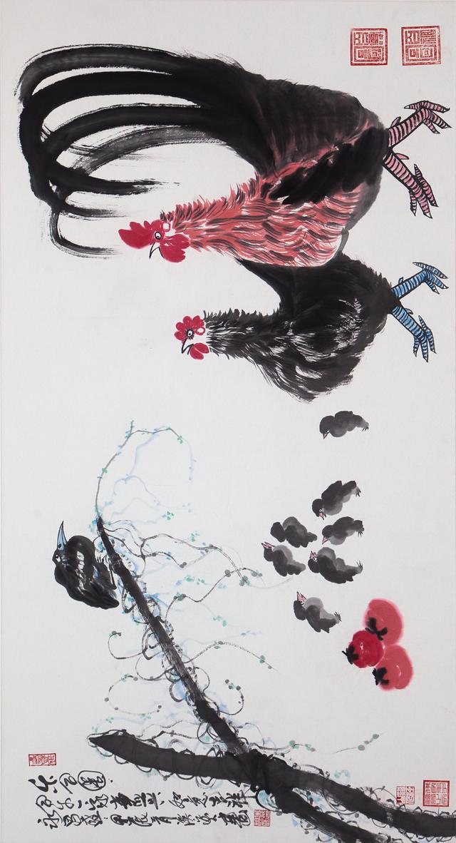 溪江画派创始人、中国指墨画领军人朱祖国先生国画鸡