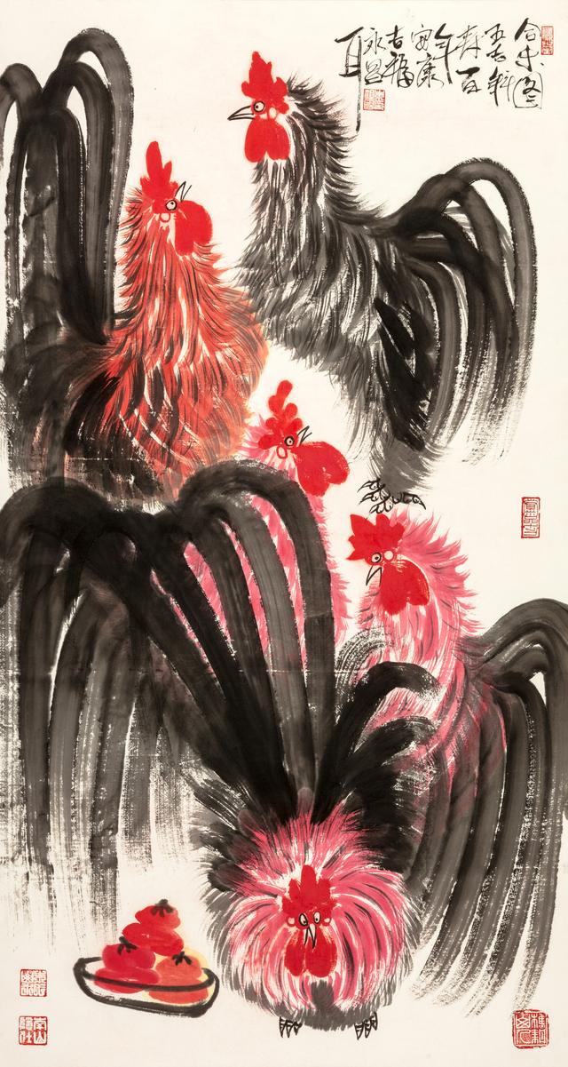 在当代艺术多元发展的背景下,朱祖国对传统题材的创新诠释具有特殊意义。他的雄鸡作品既保持了传统花鸟画的精神内核,又通过技法革新赋予了这一题材新的视觉可能性。这种创作路径提示我们:传统的生命力不在于固守形式,而在于不断与当代对话。朱祖国以指墨画鸡的成功实践证明,只有深入理解传统精髓,才能实现真正意义上的创新;只有扎根于民族文化土壤,艺术创作才能获得持久的精神高度。