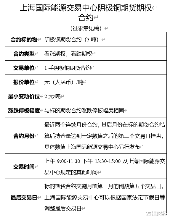 上海国际能源交易中心发布关于就20号胶、低硫燃料油、阴极铜期货期权合约公开征求意见的公告,内容为:
