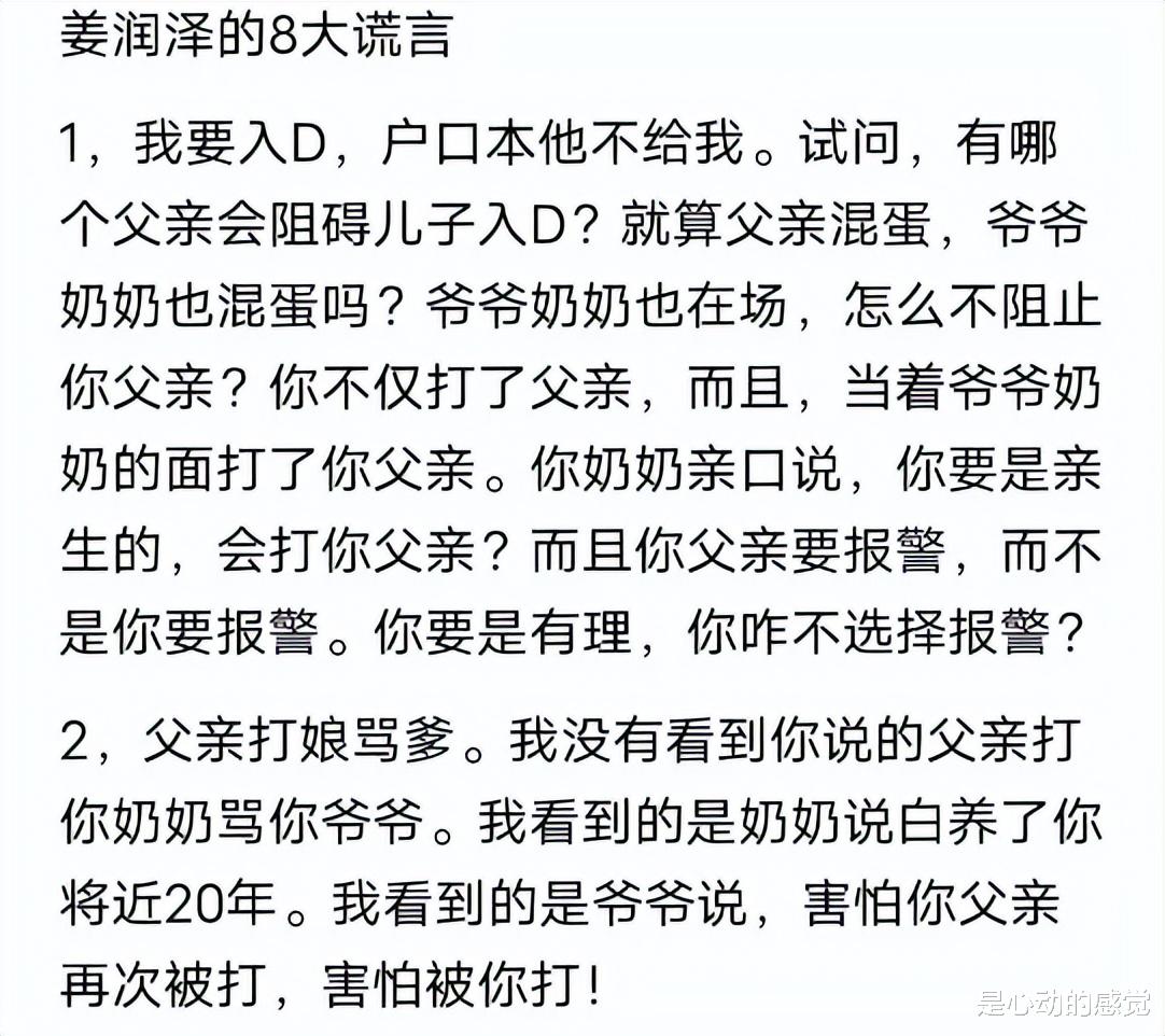 在大儿子的说辞下,自己和姜大哥爆发肢体冲突是因为自己回家拿户口本要入dang,姜大哥阻拦所以二人才动了手,甚至还说自己两个胳膊都是伤痕。