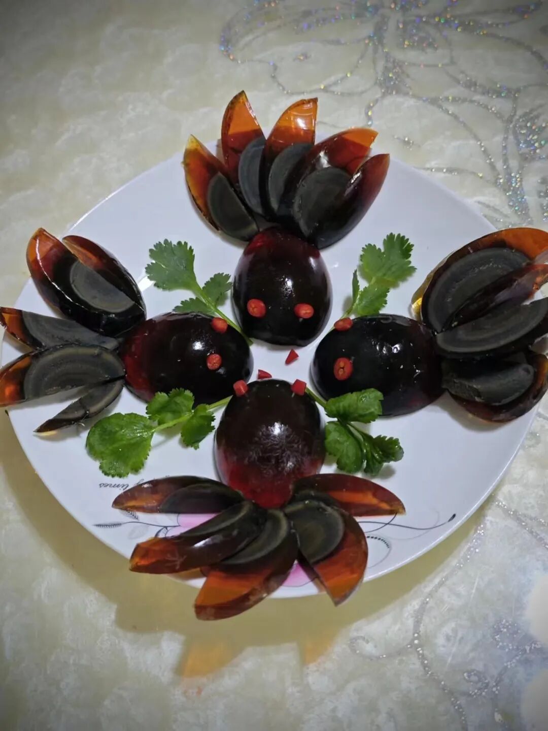14.这个皮蛋摆盘做得还是很好看的,但这么生吃皮蛋,还是感觉难以下咽。