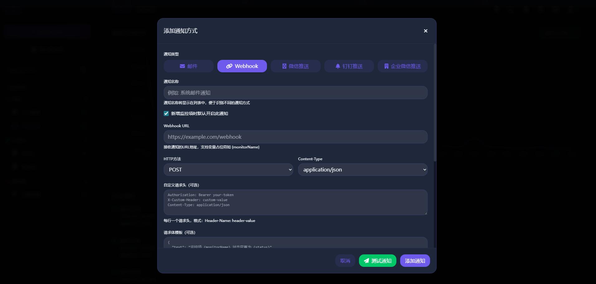添加通知方式