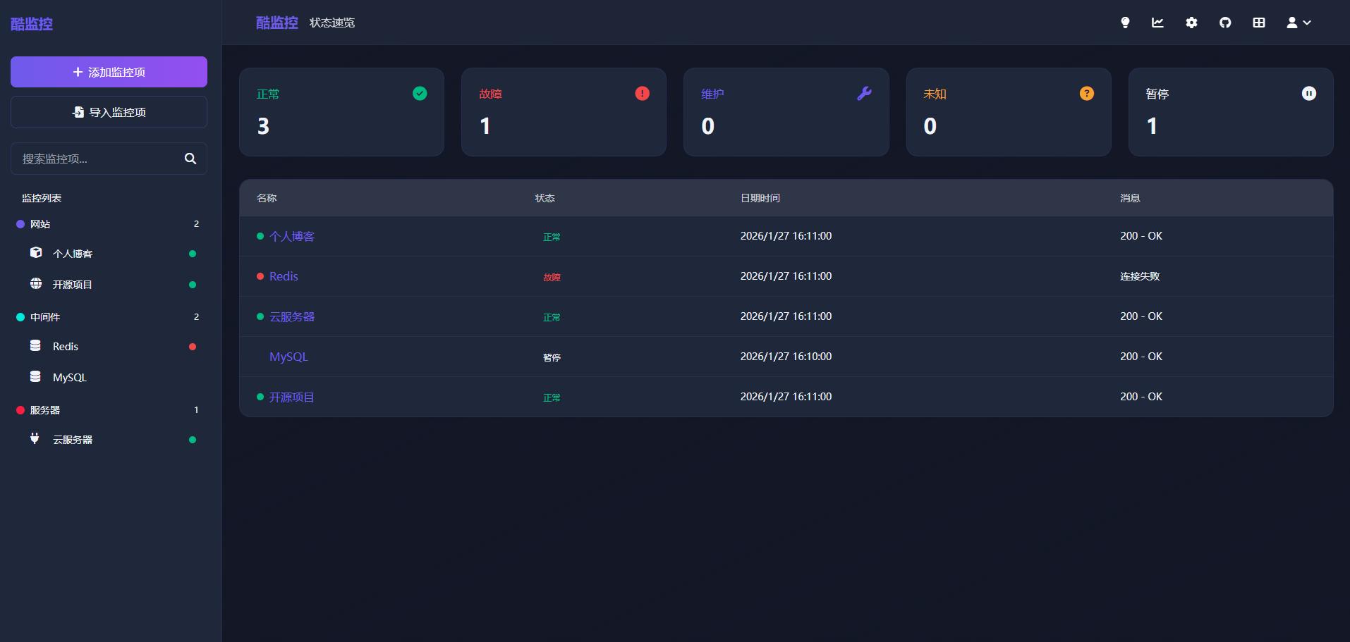 coolmonitor 没有复杂的配置项,能覆盖日常监控的核心需求,颜值高、易部署、易维护,不管是个人开发者监控自己的小网站,还是中小企业监控内部服务,都非常适用。快去部署体验吧~