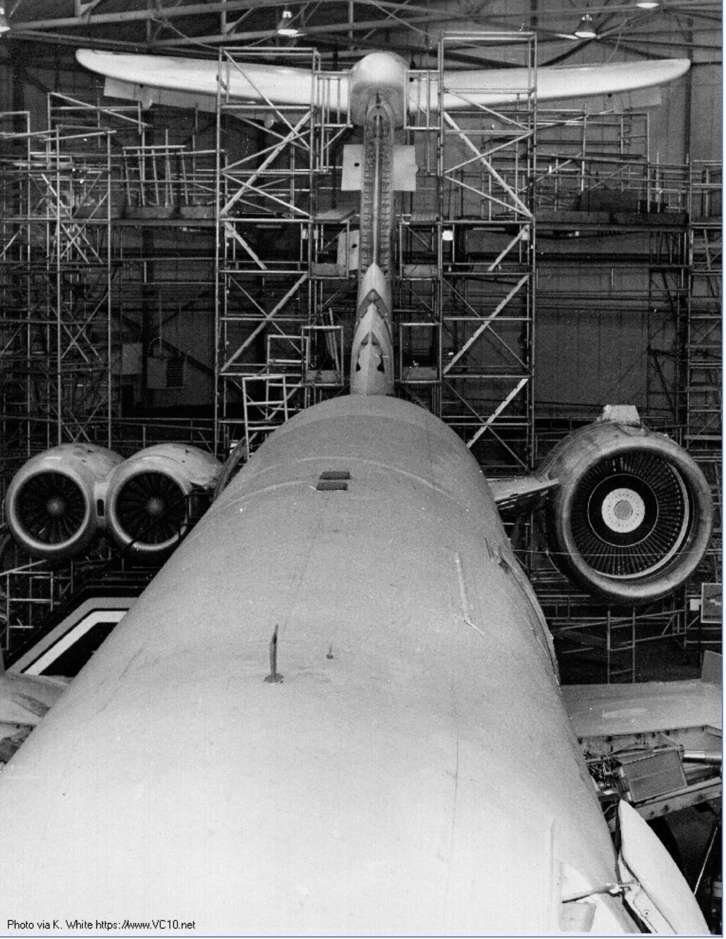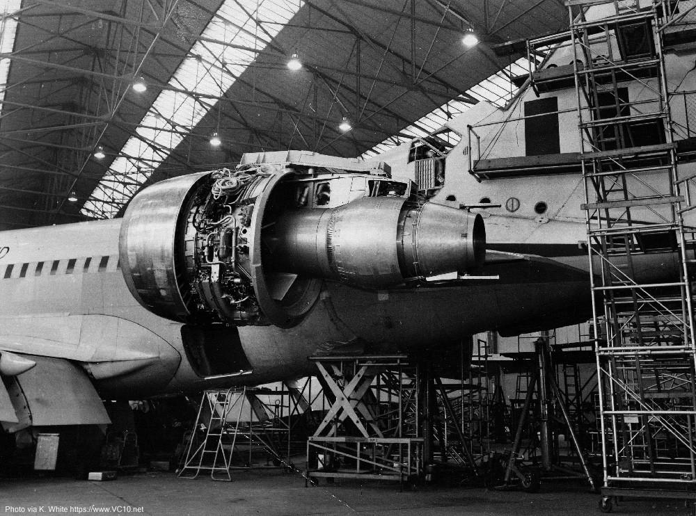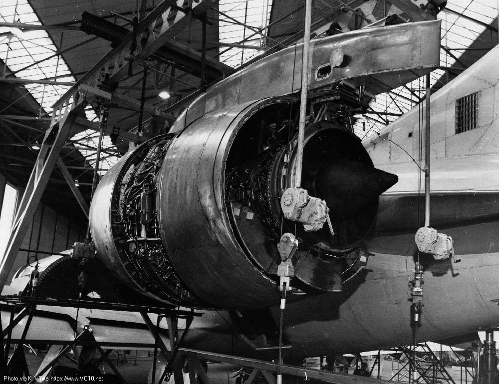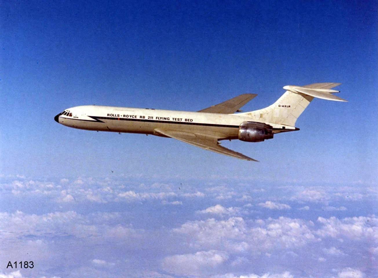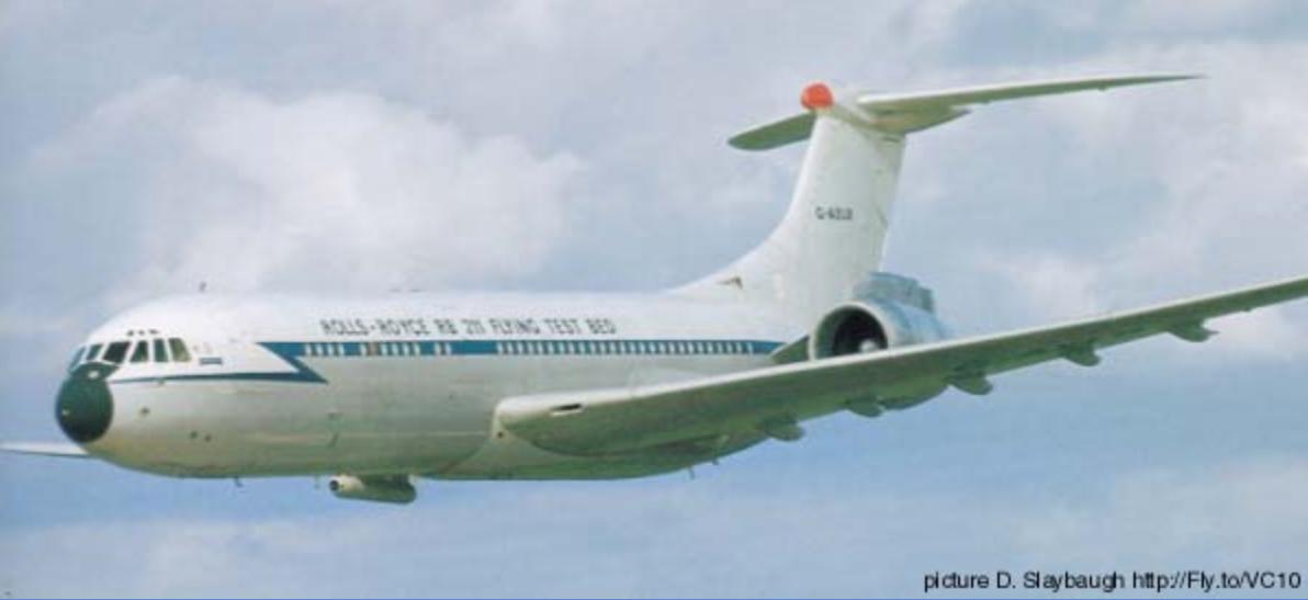 罗-罗想到了英国建造的最大的客机,BAC的VC-10,这种产量不多的客机主要在英国海外航空公司服务,皇家空军也订购了一批。罗-罗设法打通了关系,向皇家空军租借了其中一架。