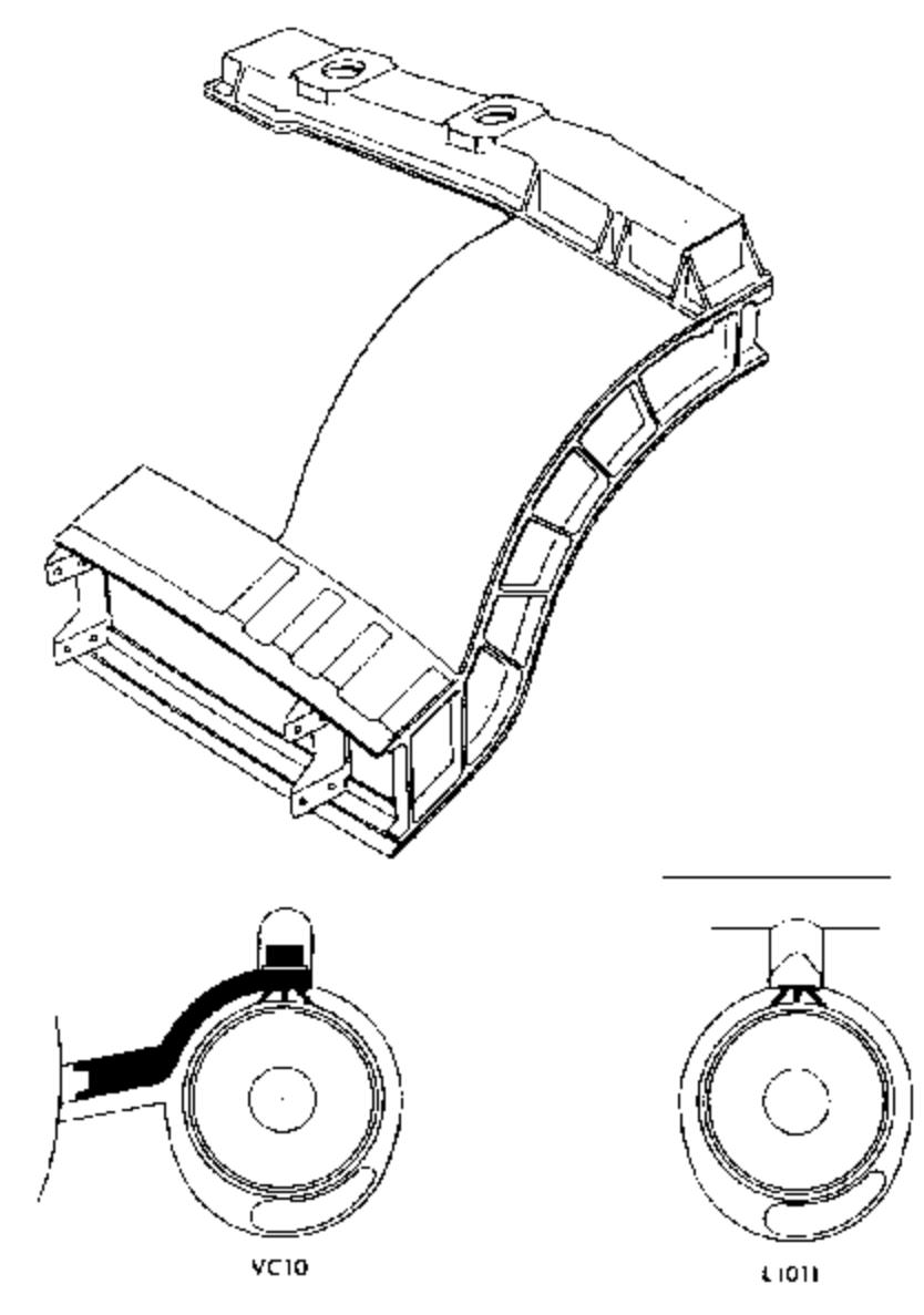 罗-罗的方案是在 VC10 机身侧面的安装巨大的RB211引擎,并且由于机翼干净,机身相对较高,RB211 安装位置气流稳定,因此测试结果将是普遍可接受的。为了能够连接 RB211,发动机横梁得到了加强,以适应更大的正面区域带来的更高重量和空气动力学影响。此外,由于 RB211 是为挂架安装而设计的,因此需要进行一些其他修改以适应侧面安装的 VC10 挂架。