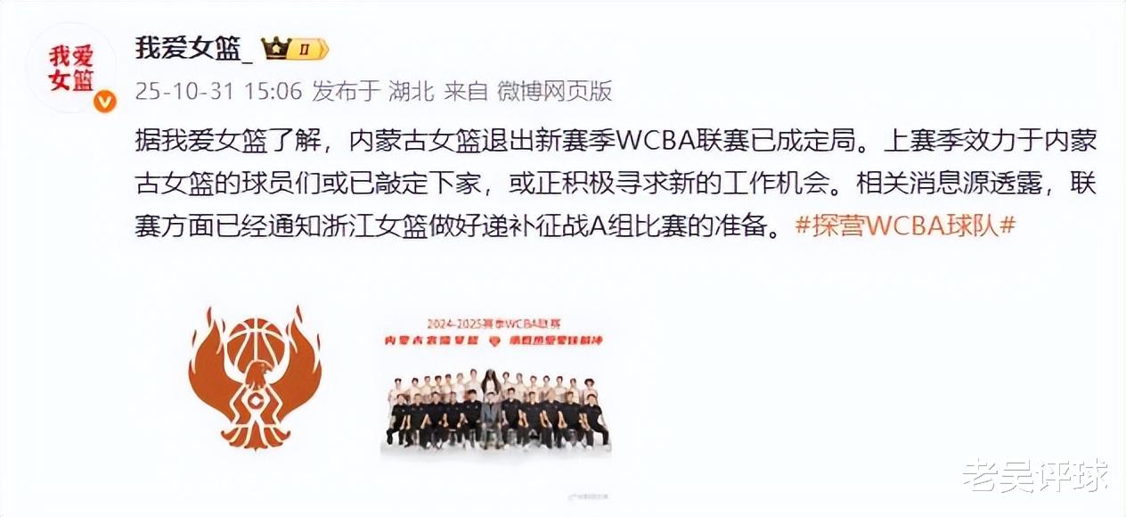 10月31日最新消息,据知名媒体人我爱女篮透露,内蒙古农信女篮退出下赛季WCBA联赛已成定局。