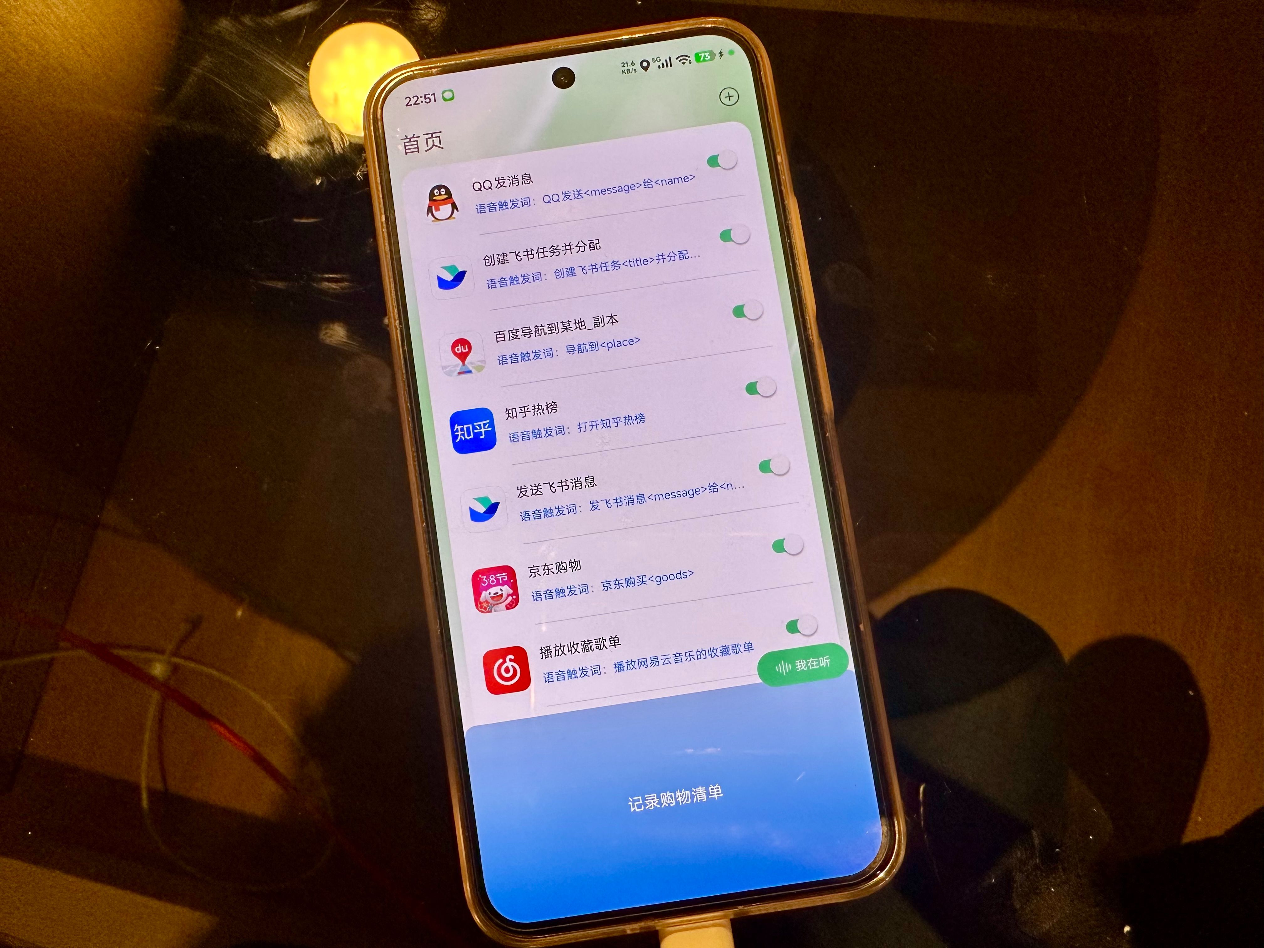 与普通手机助手相比,煎饺App的优势在于“深度定制化”和“跨应用联动”。普通助手大多只能实现单一应用内的简单操作,而煎饺App能打破应用壁垒,完成多步骤组合指令。实测中,我们设置了“健身模式”,语音触发后,手机自动关闭后台冗余应用、开启运动APP、连接蓝牙耳机并播放健身音乐,整个过程一气呵成,响应速度仅需1.2秒,识别准确率高达98%,与豆包AI手机的实测数据相差无几。对于极客用户而言,其开放的指令编辑功能更是一大亮点,支持自定义操作顺序、设置触发条件,甚至能通过脚本实现更复杂的自动化流程,完全满足了探索手机潜能的创造欲。