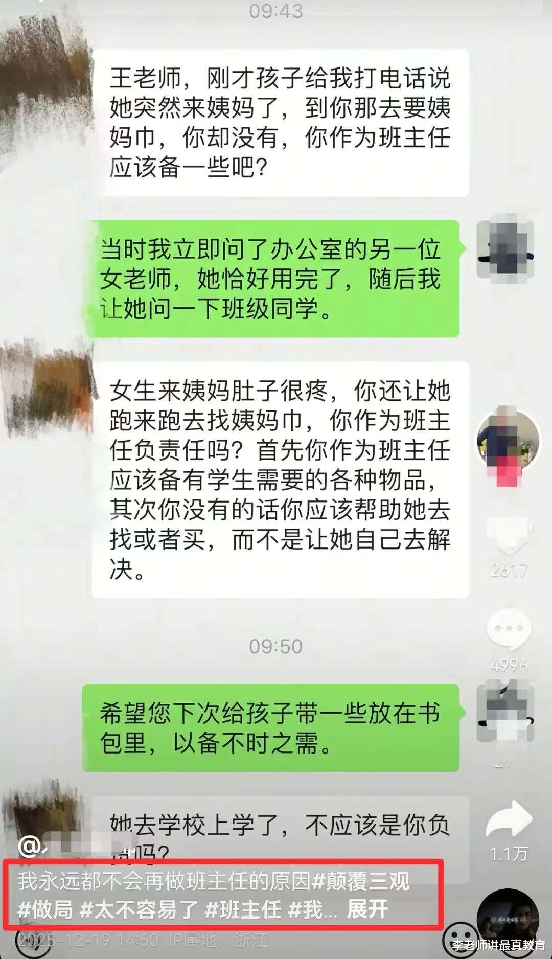 近日,浙江一位班主任分享了自己和一位家长的对话,让人非常震惊。