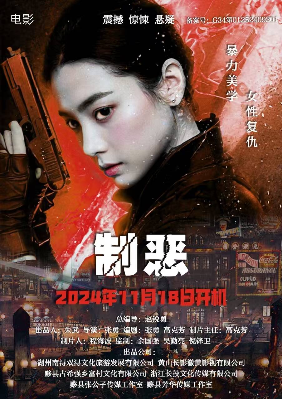 本次开机的电影《制恶》阵容强大,总编导由国家一级作家赵锐勇担纲,出品人朱武,监制余国强、吴勤亮、主演郭美林子、王辉、李博。电影由湖州南浔双浔文化旅游发展有限公司、黄山长影徽黄影视有限公司、黟县古希强乡富村文化有限公司、浙江长投文化传媒有限公司、黟县张公子传媒工作室、黟县芳华传媒工作室共同出品。