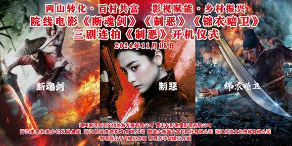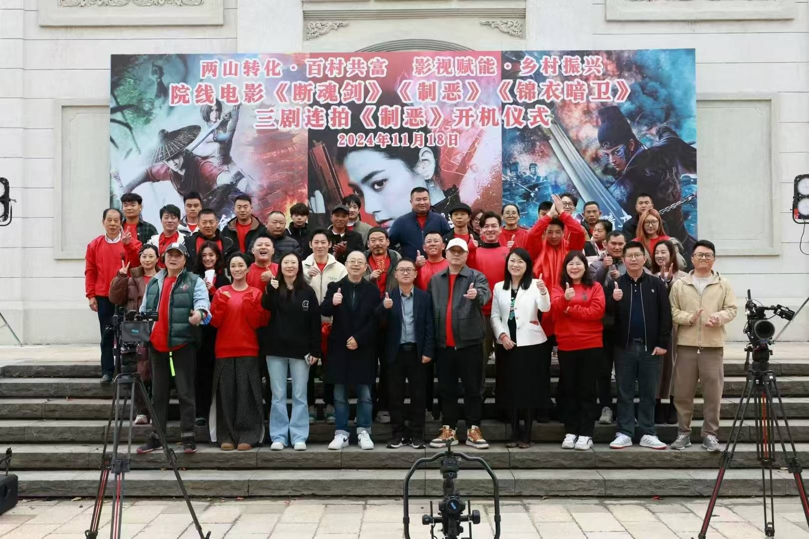 为探索影视产业投入产出可持续发展,进一步贯彻落实影视赋能乡村振兴政策,电影《断魂剑》《制恶》《锦衣暗卫》三剧于11月18日在湖州南浔双林古镇举行了三剧连拍的开机仪式。本次活动不仅是对10月23日三剧连拍活动的延续与呼应,更是浙江未来和美乡村发展集团联合长影徽黄、双浔文化两家公司积极投身于影视赋能乡村振兴实践,不断探索与推动“绿水青山”向“金山银山”转化的重要举措。