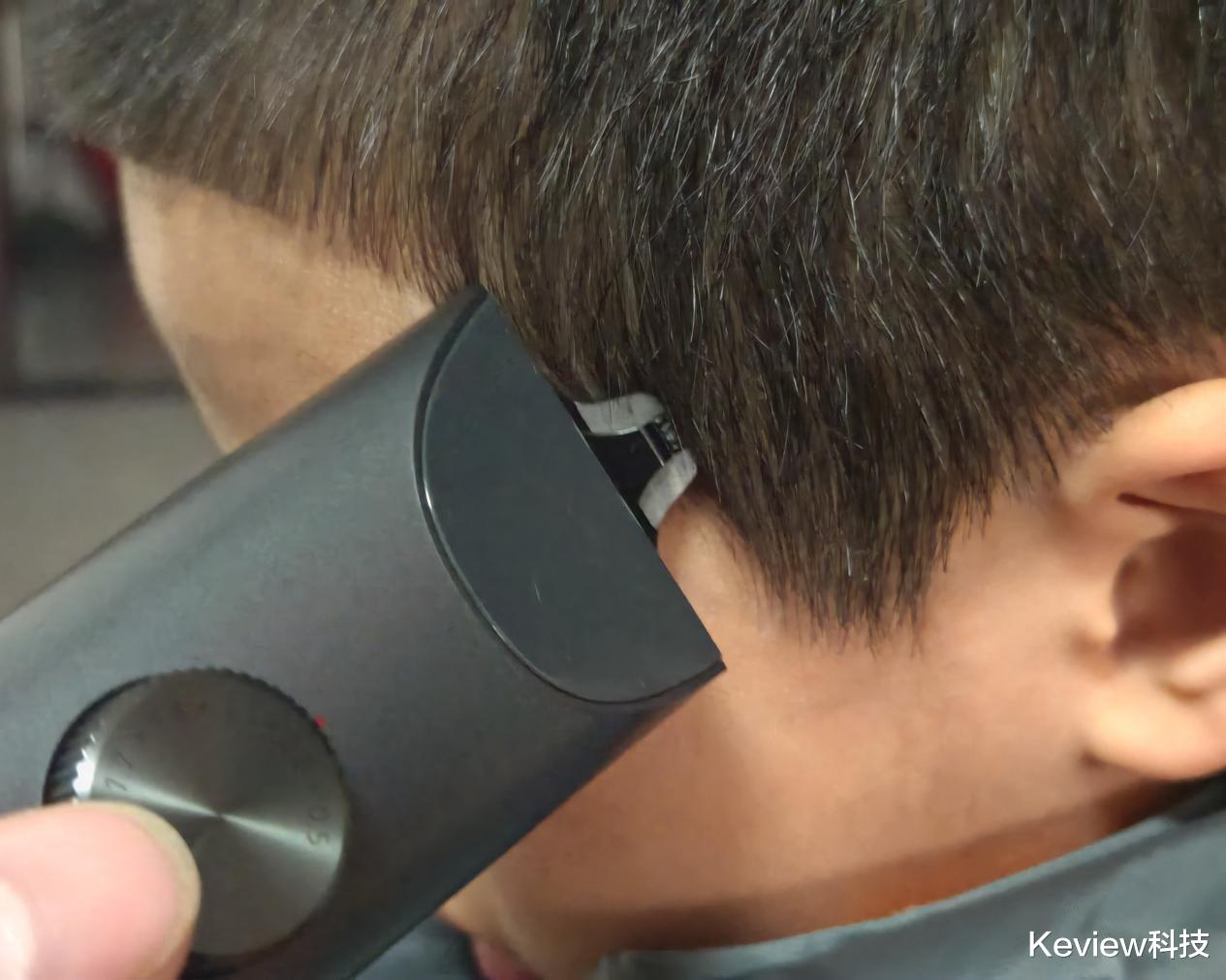 产品以深锖色作为主色调,这种颜色具有较强的耐脏性,手感温润且不易残留指纹。机身重量控制得很好,握在手里长时间给家人理发,手腕也不会发酸。