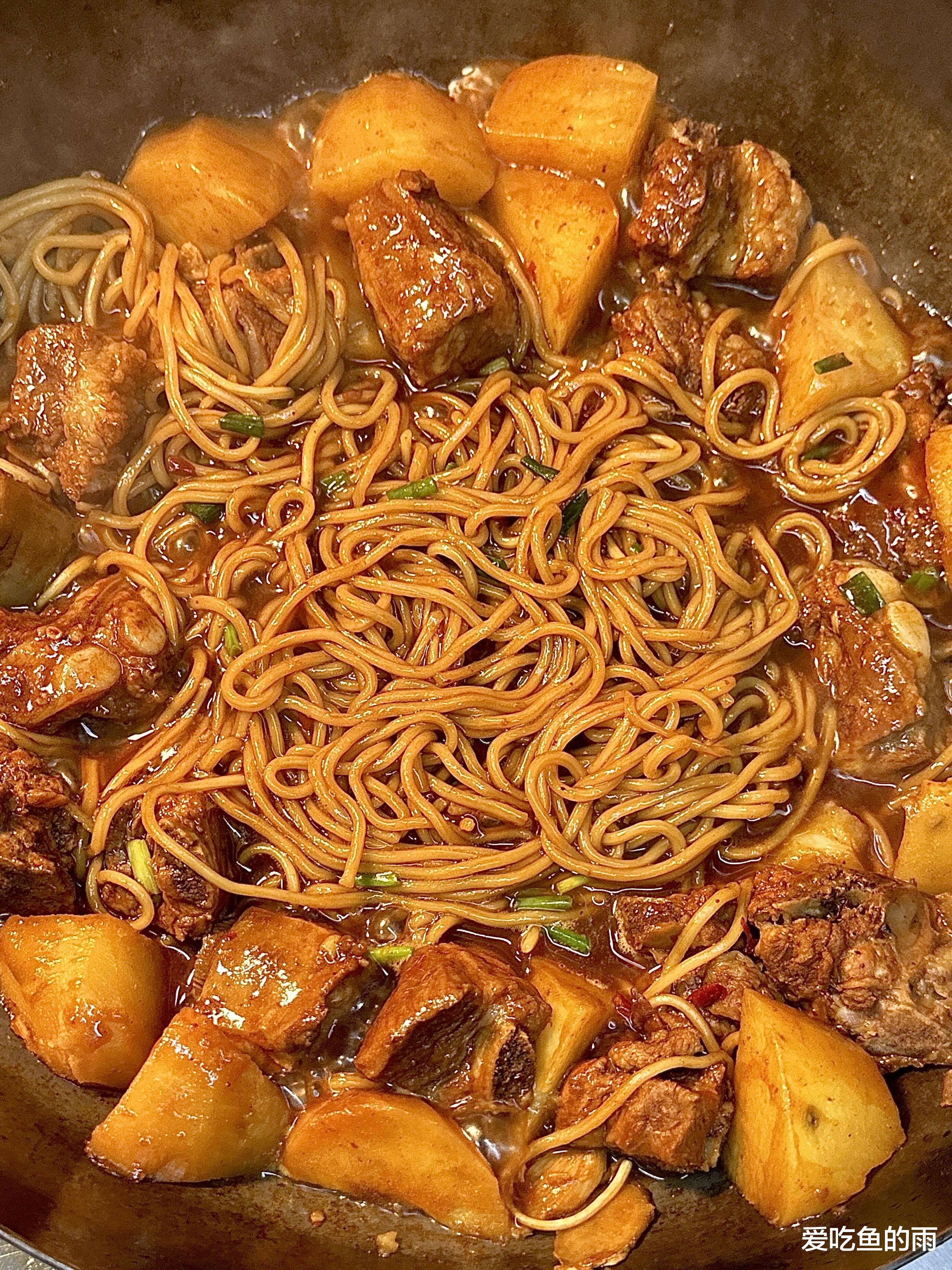 排骨土豆焖面:一锅出的顶级满足,香到想舔锅!