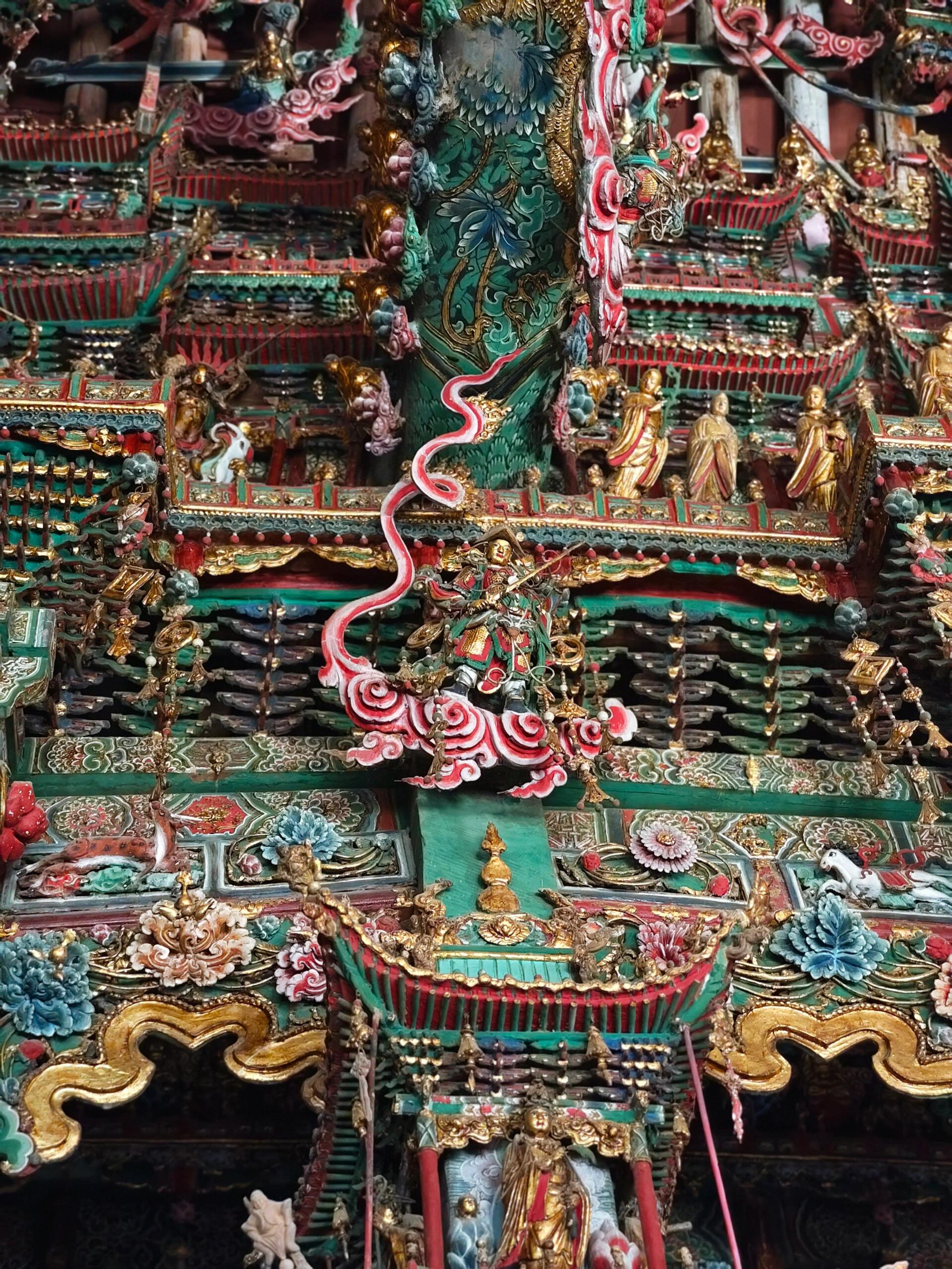 站在大雄宝殿内,仰头望去,满壁的悬塑仿佛将整个佛国世界展现在眼前。每一尊塑像都栩栩如生,仿佛下一秒就会开口说法。工匠们不仅在造型上追求逼真,在细节处理上更是精益求精。从菩萨衣褶的纹理到天王铠甲的装饰,从佛像的表情神态到手中法器的雕刻,无不体现出古代工匠的高超技艺和严谨态度。