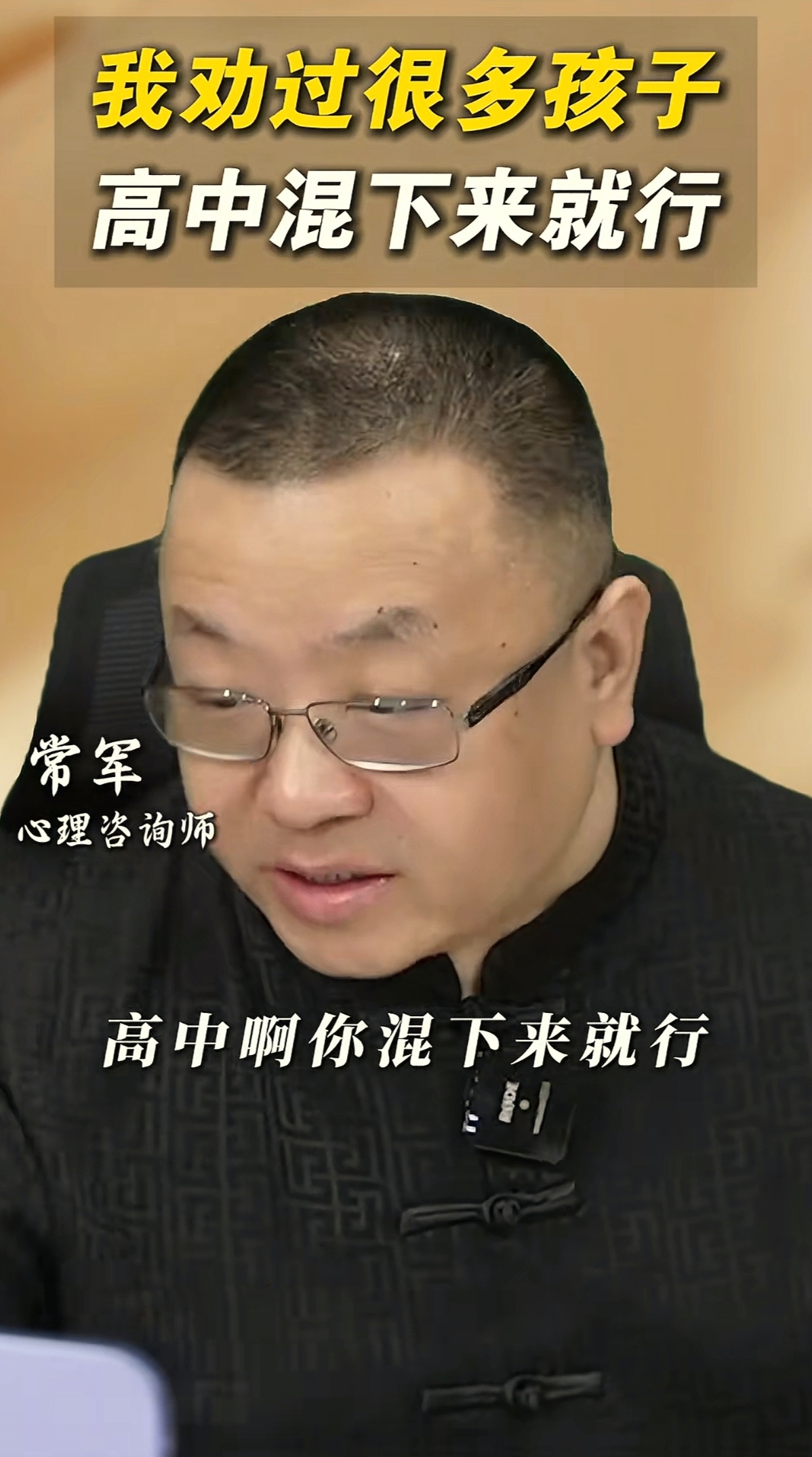 常军老师说,他跟很多孩子说,高中三年混下来,混到18岁就行。