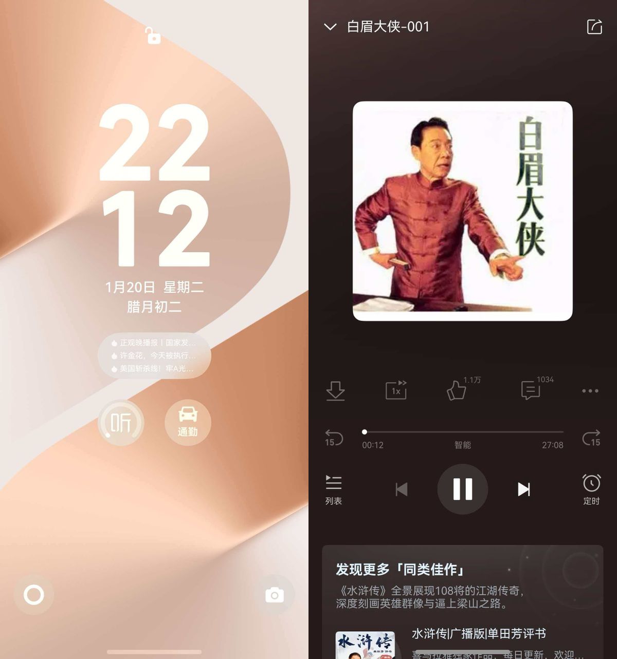 早上七点多,我被闹钟吵醒的第一件事不是睁眼,而是先摸枕边的手机,锁屏上的鸿蒙版喜马拉雅卡片轻轻一点,人脸解锁后,昨晚没听完的《白眉大侠》有声书就能快速续播,单田芳老师的声音一出来,瞬间就把我从现实拉到江湖之中。