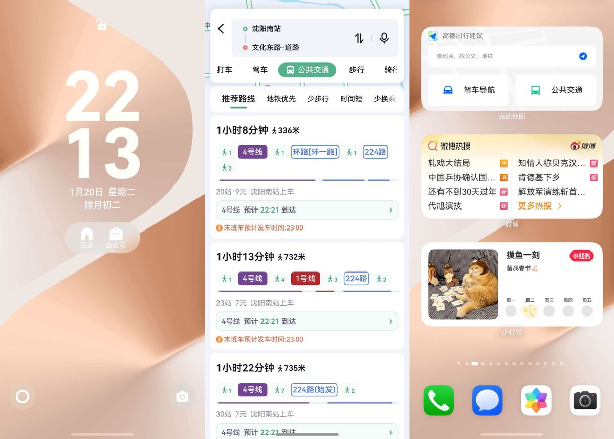 在地铁站排队的时候,真正的战斗才开始。早高峰的人潮把我挤得连抬手都困难,这时候鸿蒙版百度地图的锁屏卡片就成了我的救命稻草。点一下“去公司”,App上直接会显示路线和换乘方案,再也不用在拥挤中翻找App。高德地图的服务卡片我放在了桌面的第二屏,主要在出地铁后用,实时公交位置一点即查。