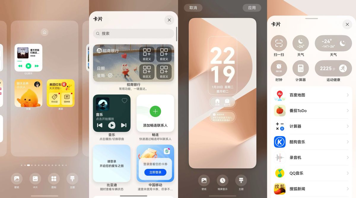 如果你也想要像我一样玩转华为手机的HarmonyOS卡片,可以这样操作:桌面双指捏合选“卡片”,或长按应用图标直到弹出卡片选项,就能添加桌面卡片。锁屏时,双指捏合进入编辑器,点“+”号即可添加常用服务。