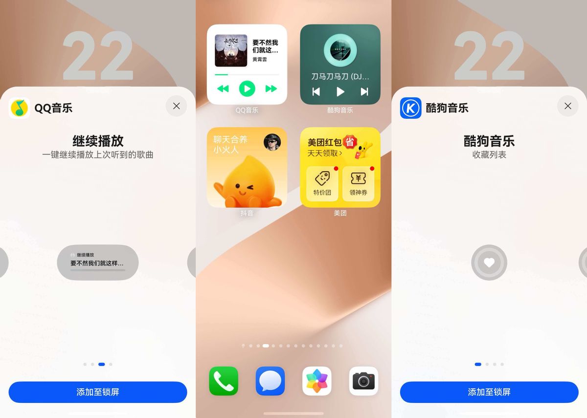 通勤路上音乐不能停。我把鸿蒙版QQ音乐的卡片放在桌面,点一下就能续播上次听的歌曲,歌曲随心切换。早上听肾上腺素飙升的神曲提神,下午换舒缓的轻音乐回血,切歌、暂停根本不用进App。有时候想换口味,我也会用鸿蒙版酷狗音乐的桌面和锁屏卡片,不同风格随时切换。