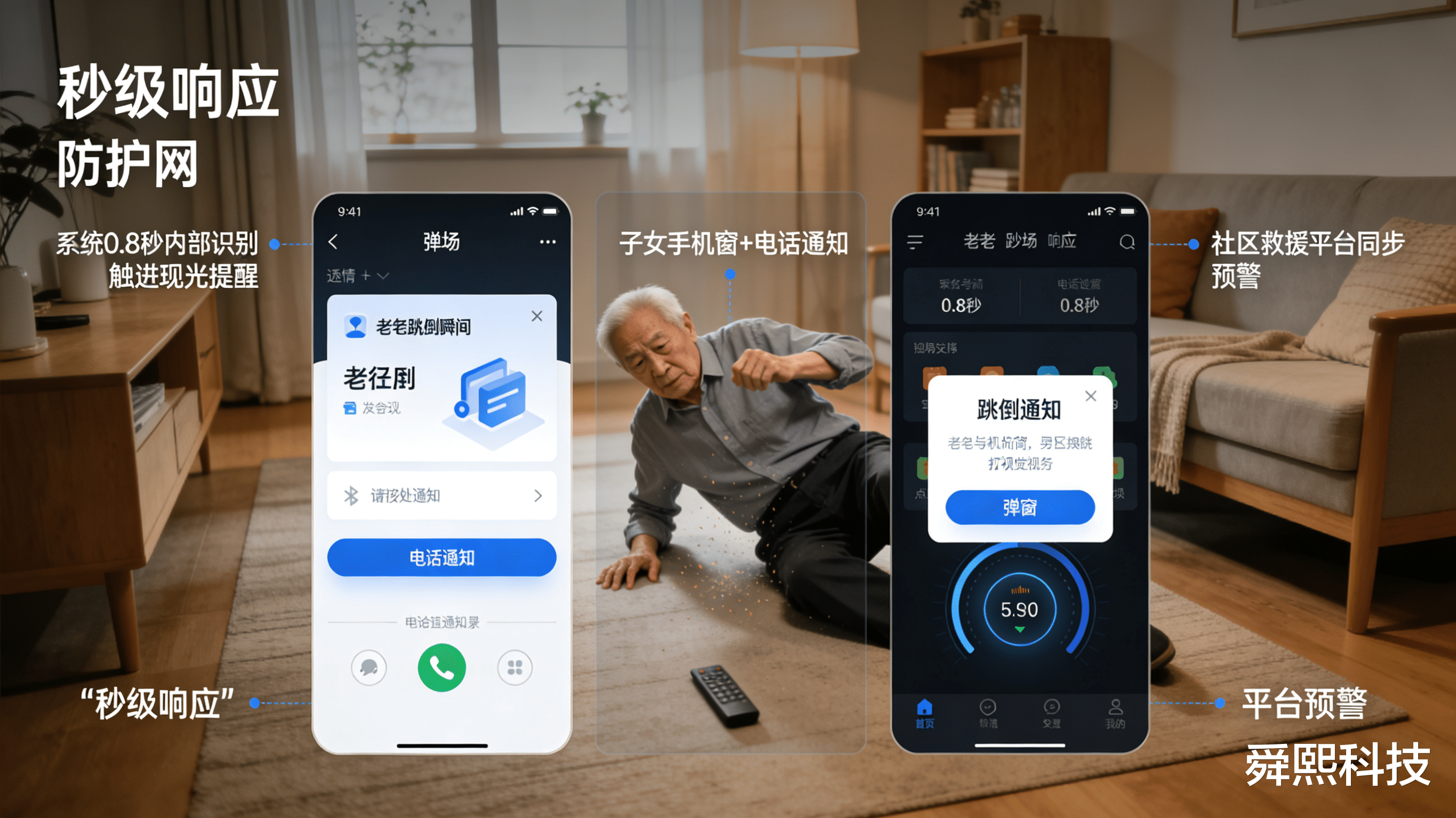 81岁的周奶奶独居在家,上个月凌晨起夜时不慎滑倒。防跌倒雷达瞬间识别并报警,社区救援人员3分钟赶到现场,子女也在接到电话后第一时间赶回家。“当时摔懵了,连呼救的力气都没有,多亏这个‘救命雷达’。”周奶奶事后感慨道。该设备还具备“久坐提醒”功能,若长辈长时间保持同一姿势,会轻柔语音提示起身活动,从源头降低跌倒风险,目前已在全国500多个社区落地使用。
