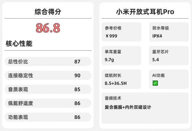 推荐六:小米开放式耳机Pro(999元)推荐指数:⭐⭐⭐⭐机型亮点:支持独立空间音频,开启后可以带来更加沉浸的体验