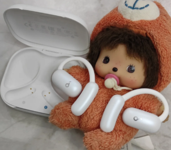 单耳才5.6克,它采用C形耳挂是镍钛合金的,能跟着耳廓弧度调整,跑步甩头、跳绳都稳,戴眼镜也不硌耳。但要留意品控,身边有人用久了耳挂连接处裂了,日常还是得轻拿轻放。