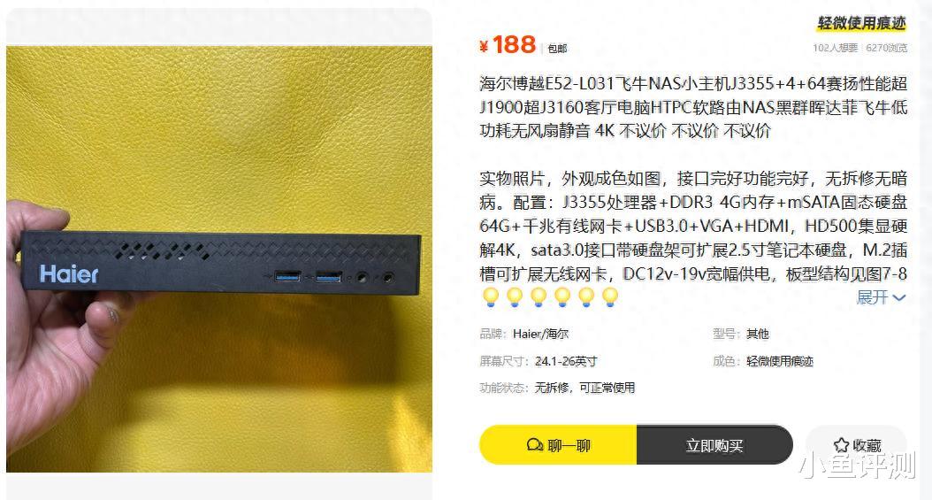 别急,今天就来聊一个海尔博越E52-L031,或者更准确地说,这其实就是一台老咕噜棒子主机。对,就是那台标价188块,配置写着J3355+4G+64G的家伙。这价格,在如今一杯奶茶都动辄二三十的年代,显得格外扎眼。