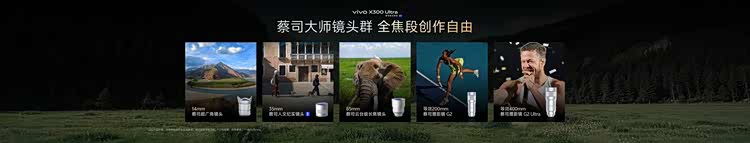 “3+2”蔡司大师镜头群,全面相机化配置重构手机影像vivo X300 Ultra通过完整的、可扩展的、真正意义上的——蔡司大师镜头群,全黄金焦段、全大底、全蔡司、全高画质、全超级防抖,实现创作自由。14mm蔡司超广角镜头搭载蓝图×索尼LYTIA 818传感器,1/1.28英寸超大底,拍摄风光和人像实力不用多说;但比风光和人像更加依赖超广角的是视频,大底加上CIPA 6.0专业级防抖,跑着拍、转着拍,画面都很稳。35mm蔡司人文纪实镜头II搭载行业首发蓝图×索尼LYTIA 901传感器,1/1.12英寸超大底,像素升级至最高2亿直出,轻松实现35mm黄金焦段高画质;大底之外,光学镀膜也全面升级,采用1G+6P行业前沿的镀膜技术,反射率有效降低20%以上,加上CIPA 6.5专业级防抖,配合全新升级的人文模式,抬手就能稳出故事大片。作为第五代蔡司2亿灭霸长焦——85mm蔡司云台级长焦镜头,搭载全球首发蓝图×三星HP0传感器,1/1.4英寸超大底,在色彩、对焦、HDR和功耗控制上全面升级,自研的60fps高帧率系统通路、蓝图高刷追焦引擎、NICE算法引擎,每秒60次自动对焦是过去的两倍,焦点框如影随形,死死咬住目标;同时首发3°OIS光学防抖,实现专业相机才有的CIPA7.0专业级防抖,让用户在长焦运动抓拍场景下不仅追得很准,还能拍得更稳。为了让用户实现全场景又稳又准拿下每个瞬间,vivo X300 Ultra还带来两款外挂镜头。一个是被称为“大炮400”的vivo蔡司增距镜G2 Ultra,内部采用2组15片的精密光学结构,支持等效400mm/17.4x光学直出2亿像素,叠加85mm蔡司云台级长焦镜头的超大底,蓝图高刷追焦引擎的超快追焦、3°OIS光学防抖的超稳防抖,「专业V单」既是非洲拍动物的出片利器,也是超长焦观演观赛神器;另一个是被称为“口红200”的vivo蔡司增距镜G2,体积小巧便携,支持等效200mm/8.7x光学直出2亿像素,叠加85mm镜头3°OIS光学防抖实现CIPA 6.5,超清60fps高刷追焦,不仅轻还很强。全大底的蔡司大师镜头群,还支持风光、普通拍照模式下,全焦段、全亮度段直出2500万像素,让V单拥有全高画质。此外,对于追求更极致操控感的创作者,vivo X300 Ultra还升级了专业影像手柄套装,全新的外观设计、按键布局、快捷功能,将复杂的参数调整,变得更直观、简单且充满乐趣,让用户可以随时随地“出发,去创作”。