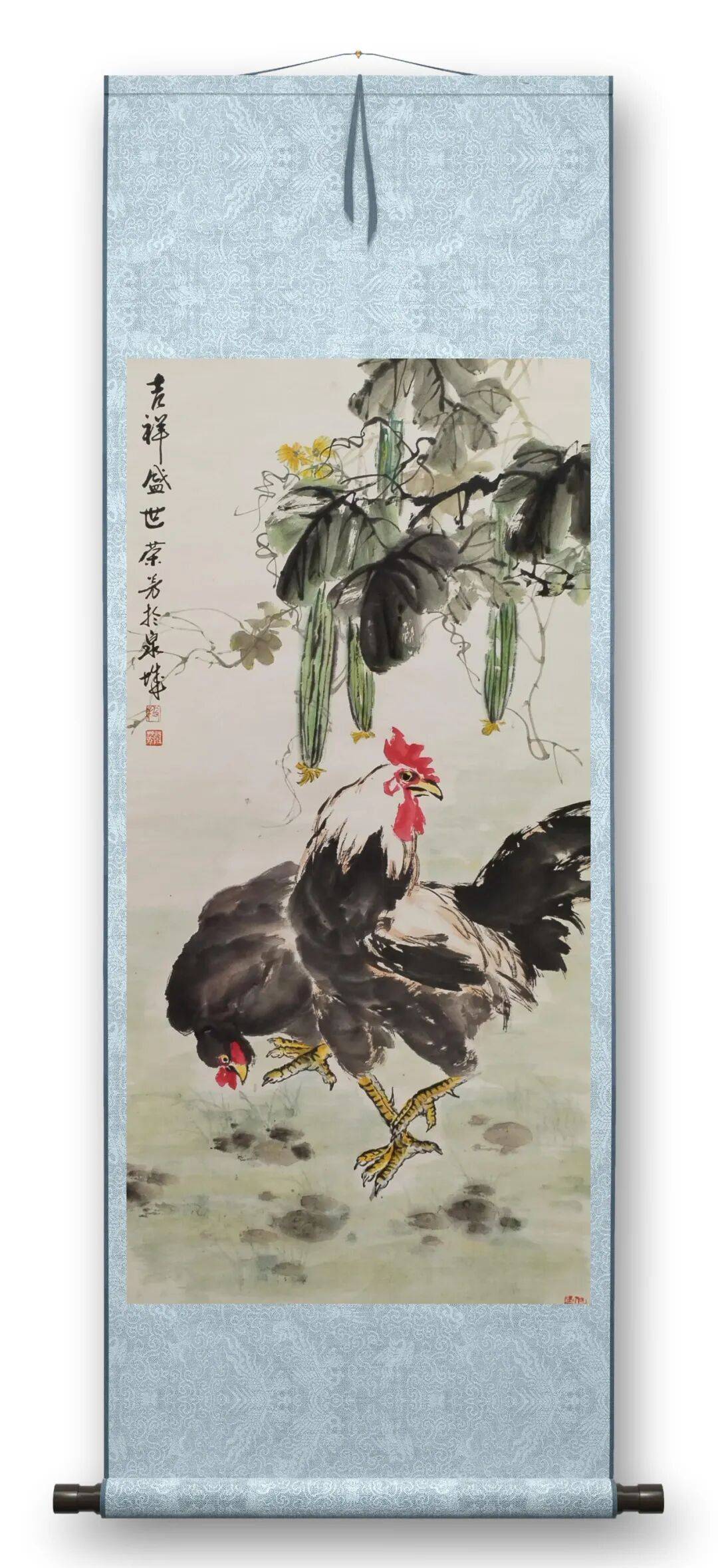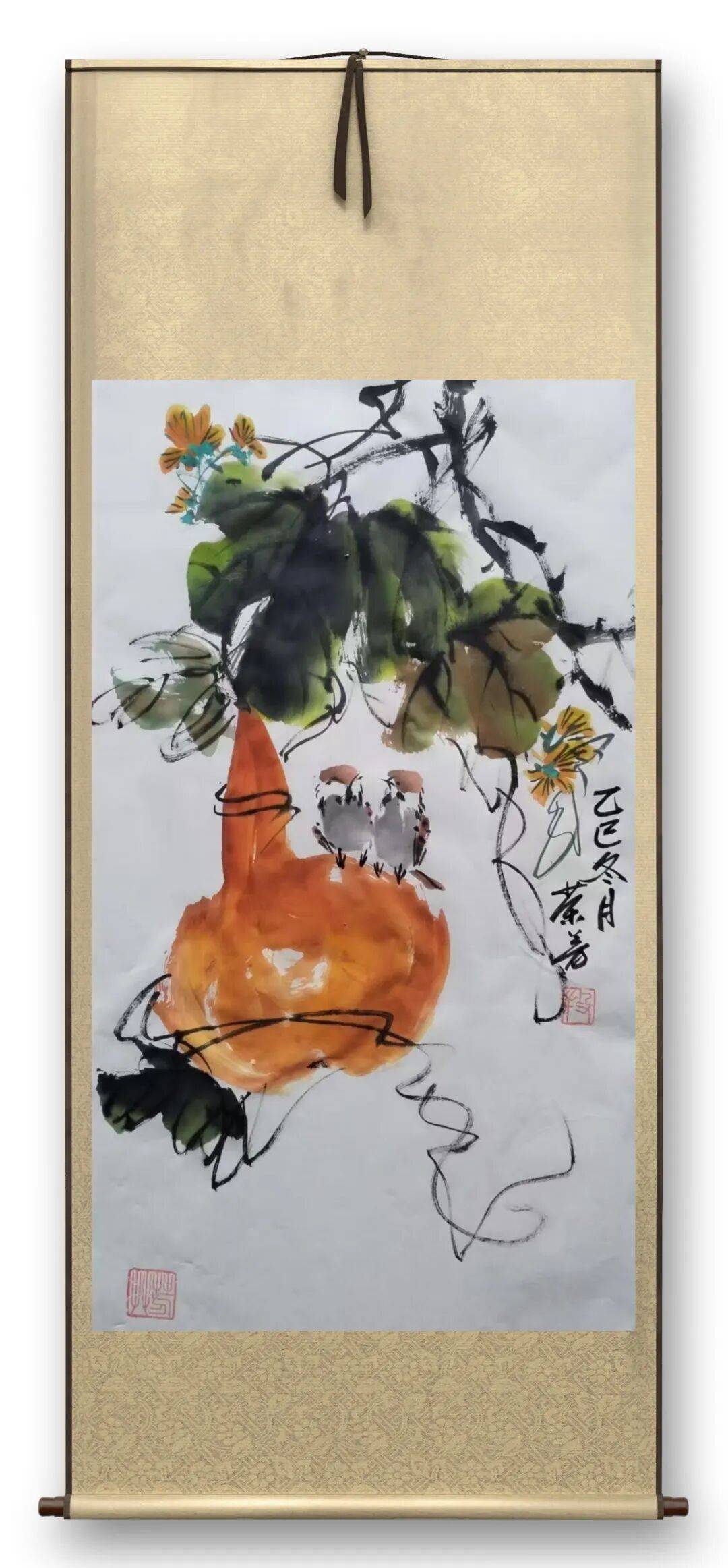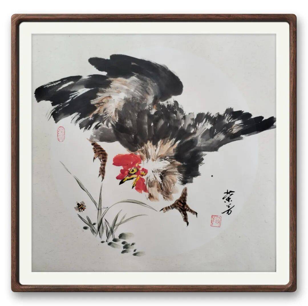 贯穿其作品的,是笔墨的淬炼与情怀的沉淀。先生笔墨根植传统,枯笔苍劲如老藤盘曲,湿笔润泽似春雨润物,勾擦点染间尽得古法真意;却又不困于古法,以己之性情驱笔,使笔墨成为情感的延伸。观其作品,无论是牡丹的傲骨、雀鸟的灵动,还是藤蔓的苍劲,都藏着先生对自然的敬畏、对生命的热爱。花鸟不再是单纯的物象,而是其随喜达观人生态度的投射——那份“自藏薪柴好过冬”的卓然独立,那份越挫越勇的奋斗精神,皆由笔墨流转而出,滋养观者心神。