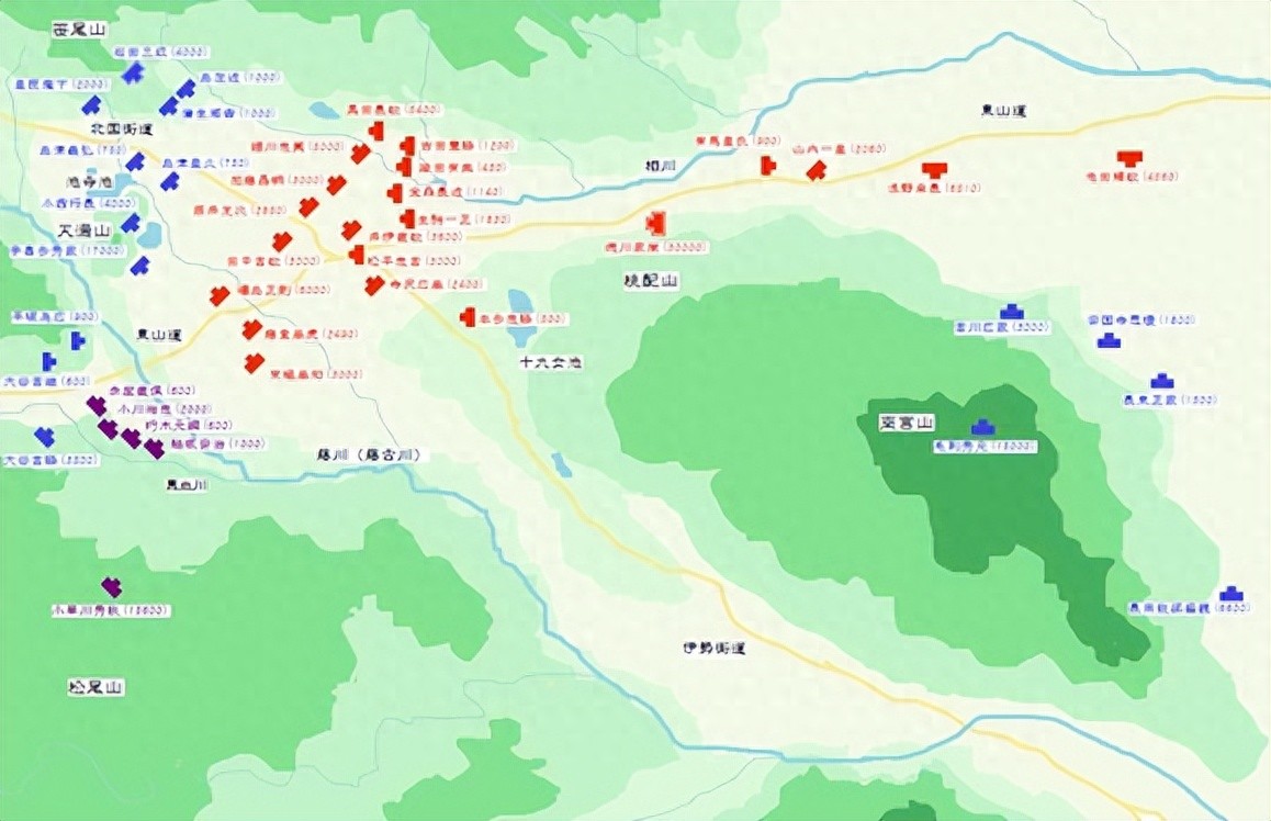 这样,秀赖的实际掌控部分,除掉摄津、和泉、河内三国内的六十五万石领地(庆长十九年数据),只有分布在山城国、近江国、备中国、信浓国、大和国、丹波国、伊豫国、中国的不少飞地,丰臣家的支配范围比起秀吉时无疑是大大缩水的。