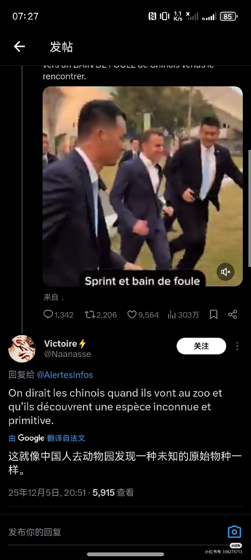 @登糕远望 看视频就知道了,努力奔跑冲向人群,保镖拦着马克龙,他还把保镖的手推开,把保镖拦在后面,努力冲过去跟学生们握手,脸上笑成一朵菊花。。。