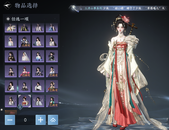 好家伙,刚打开游戏界面,就给我先送了一套价值288元的时装自选礼盒,可以任选一件最高档次的不限时时装,还有100块和30块纹玉代金券外加15抽奖道具。