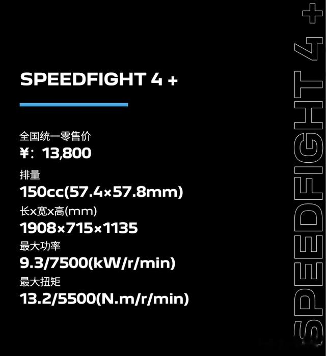 SPEEDFIGHT 4+属于合资生产,由济南轻骑标致摩托车有限公司制造。价格方面,SPEEDFIGHT 4+的厂商指导价为13,800元(实际售价以当地经销商价格为准)。值得注意的是,相较于之前的版本,其价格有所下调,但配置却有所提升,性价比更高。