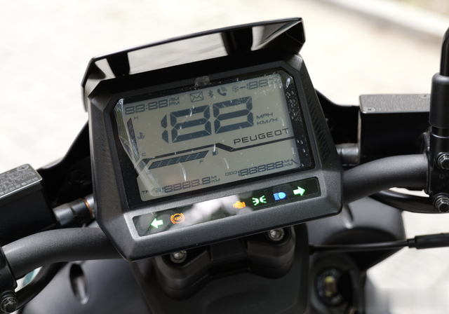 此外该车还配备了5英寸全液晶显示仪表,速度感强烈,能够清晰直观地显示出时速、转速、油量等各种行车信息,极大地提升了驾驶过程中的便利性与安全性,裸把设计则进一步提升了操控感。
