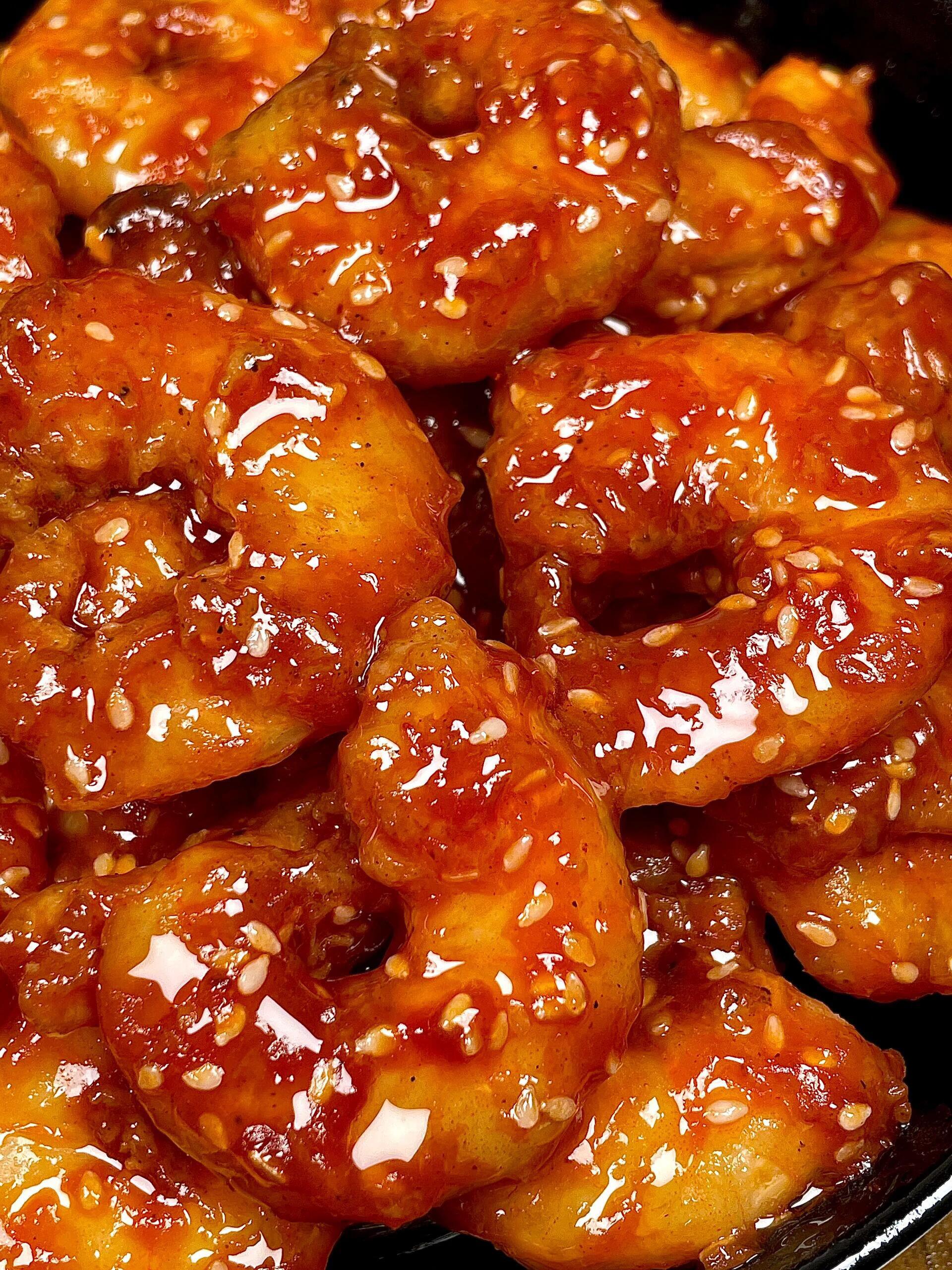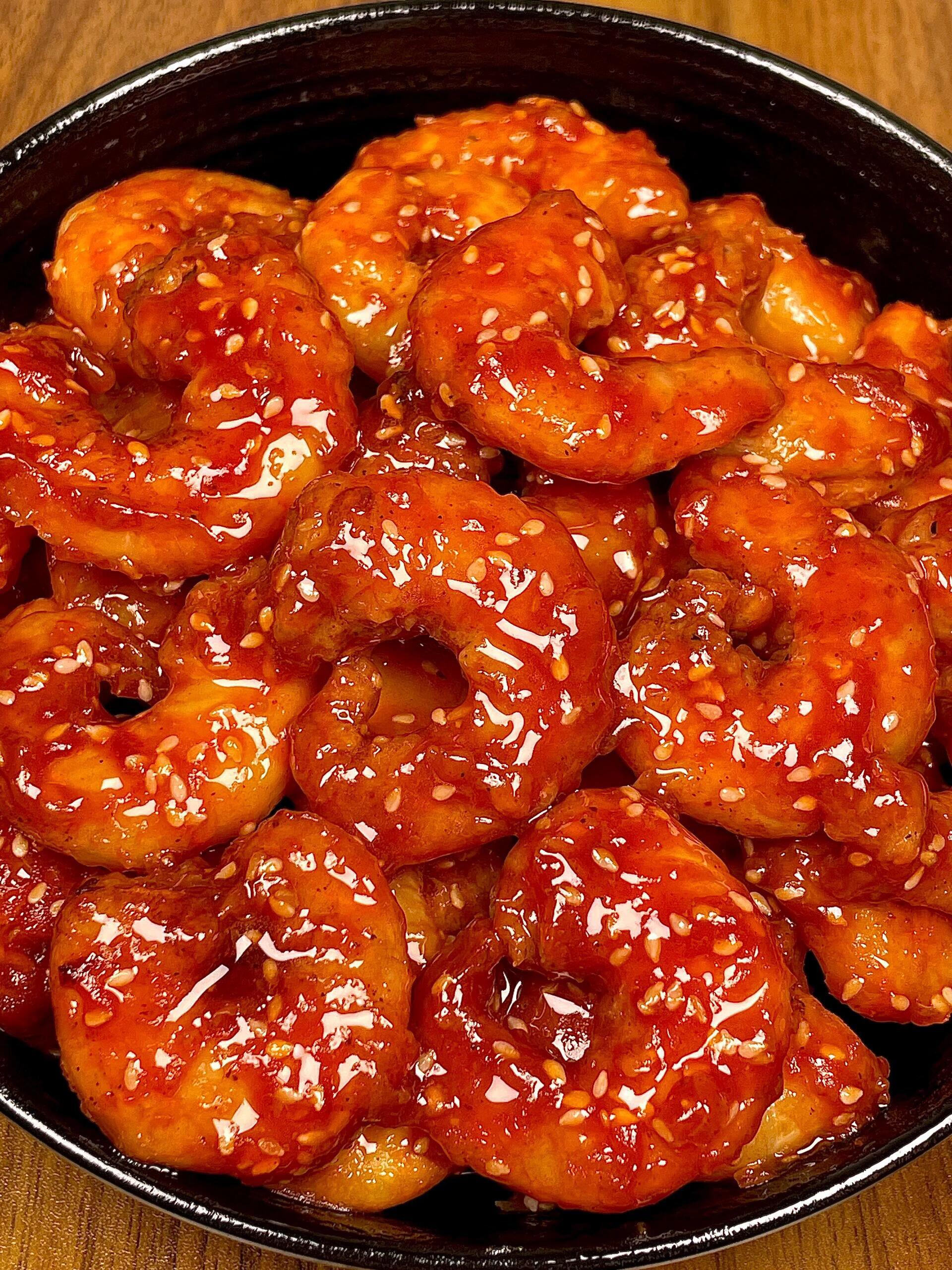 刚出锅的糖醋虾仁,色泽红亮诱人,金黄的虾仁裹着晶莹剔透的糖醋汁,撒上星星点点的白芝麻,看着就特别有食欲。趁热咬上一口,先是感受到外皮的酥脆,紧接着是鲜嫩多汁的虾肉,酸甜的酱汁在舌尖上绽放,鲜香四溢,让人回味无穷。不管是配米饭、拌面条,还是当追剧零食,都绝了!这道糖醋虾仁,用最简单的食材,最家常的做法,做出了让人惊艳的味道,绝对是家常菜里的“人气王”。下次不知道吃什么的时候,不妨试试这道糖醋虾仁,保证让你吃得满足,回味无穷,酸甜暴击,好吃到哭!
