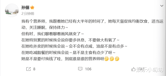 与其说孙俪请了个营养师,不如说她多交了个需要互相监督的朋友。这种把雇佣关系处成朋友关系的老板,试问谁不想遇到?