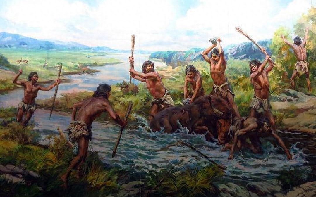 大概在百万年前的旧石器时代,又有个更聪明的家伙觉得这种改良棍子也不太好使,还太容易损坏。他就切削兽骨或打磨石头使其尖锐,再绑在木棍上去捅猎物——这种再改良过的棍子,已经可以称之为矛的雏形了。