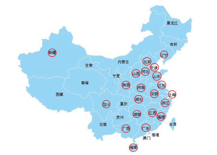 VOCs排污费试点21省市(红圈部分)