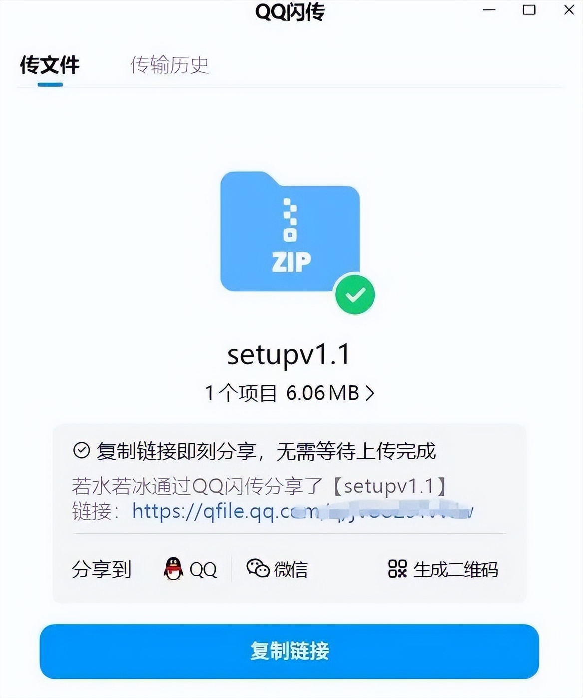 只需将想要发送的文件拖拽到闪传窗口,然后QQ会生成一个专属分享链接,你可以将它发送给任何人。