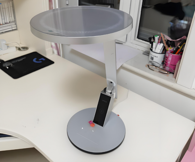 学生用的护眼灯什么牌子好?华为达伦智能台灯3的灯体重量约1.1千克,配备多关节结构,折叠后便于收纳。其灯头直径约16.8cm,光线可覆盖约1.6米桌面范围。显色指数为Ra97,色彩还原表现较好,并通过RG0无蓝光危害认证。支持鸿蒙智联功能,可通过华为智慧生活APP远程切换读写、阅屏、无极调光等模式,并支持定时休息、延时关灯等智能操作。不过它的灯头调节时的阻尼感偏弱,稳定性一般,频繁调整角度可能不够顺滑。而且智能功能依赖网络环境,存在操作延迟现象,影响使用体验。
