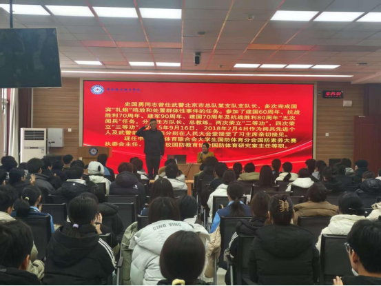 活动特邀北京高校国防教育协会国防体育研究室主任史国勇授课,现场气氛热烈,反响强烈。