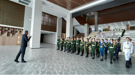 宣讲活动结束后,史国勇来到学院国旗护卫队训练现场,为队员们开展专业指导。他结合自身丰富的队列训练经验,从站姿、摆臂、踢正步等基础动作入手,纠正队员们的动作细节,耐心讲解队列训练的要领与技巧。