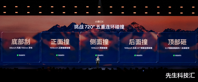 发布会现场,小鹏GX将四大安全测试现场还原,央视主持人朱广权亲身参与并加大测试难度,体验后直言小鹏GX是"稳定的出行伙伴,非常靠得住"。