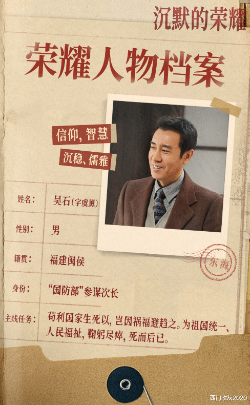 但《沉默的荣耀》不一样,这部剧直接采用真实历史人物名字,吴石、朱枫、聂曦、陈宝仓都是革命烈士,而一旦用了真实的历史人物,结局都是注定的,已经被写进了历史,再怎么演绎也都要尊重历史。因此,从这些革命烈士的角度看,他们传递了战略情报,完成了组织交代的任务,但却无法全身而退,这部剧的结局注定是个悲剧。