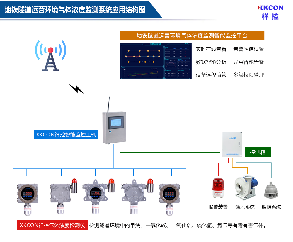 济南祥控自动化设备有限公司开发的XKCON祥控隧道环境有毒有害气体浓度在线监测系统依托物联网技术,运用温湿度检测仪、气体浓度检测仪、监控主机等智能装备,集成于隧道智能建造管控平台,通过数据共享、人机交互协同,以更加高效的方式处理和分析各种数据,为高速隧道安全运营提供全面、精准、科学、实时的数据支持。