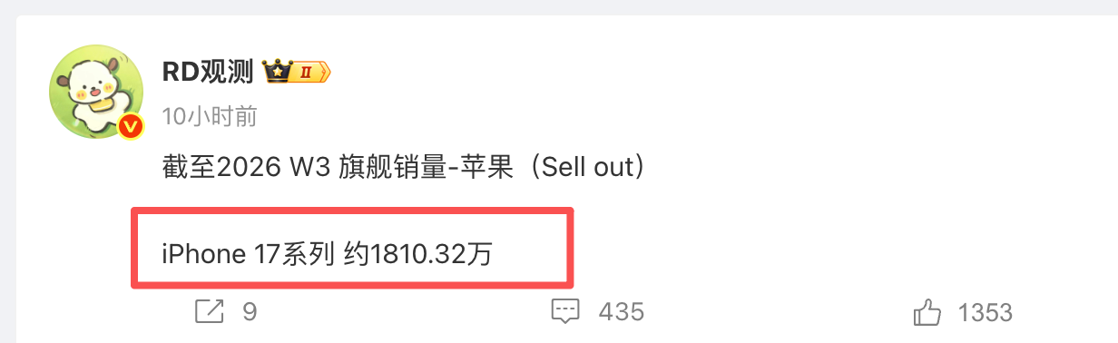 但是iPhone Air的销量并不理想,甚至比之前的mini还差,更不要说对比Plus了。Air主打轻薄,但是牺牲了配置和电池,注定是小众产品。再加上价格不菲,以及国内的eSIM环境,那更没啥吸引力,就更小众了。所以iPhone Air也就首发时一部分不在乎价格不在乎配置的极客入手了,然后就没有然后了,因为这个群体就那么大,想买的第一时间就买了,不想买的看都不看一眼,注重实惠的就入手iPhone17,想体验更极致的就选择Pro系列,所以iPhone Air比之前的mini还尴尬,首发过后基本无人问津。