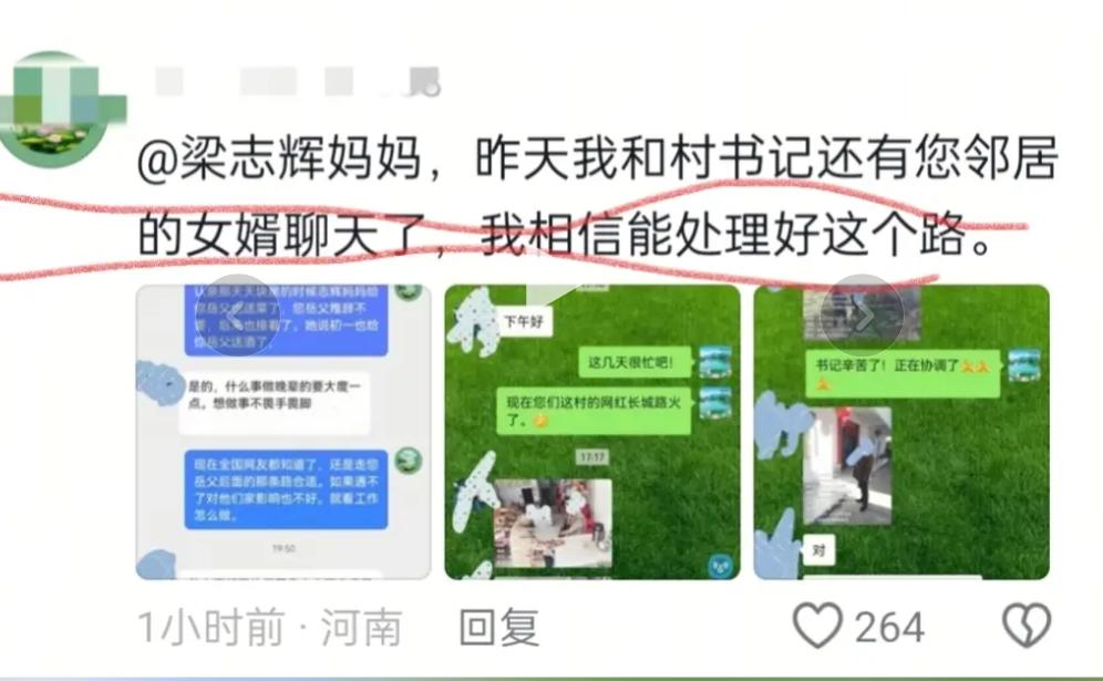 看过这条小道的人都为梁爸爸一家打抱不平,有一名网友在社媒晒了聊天记录,说是邻居女婿表态了。