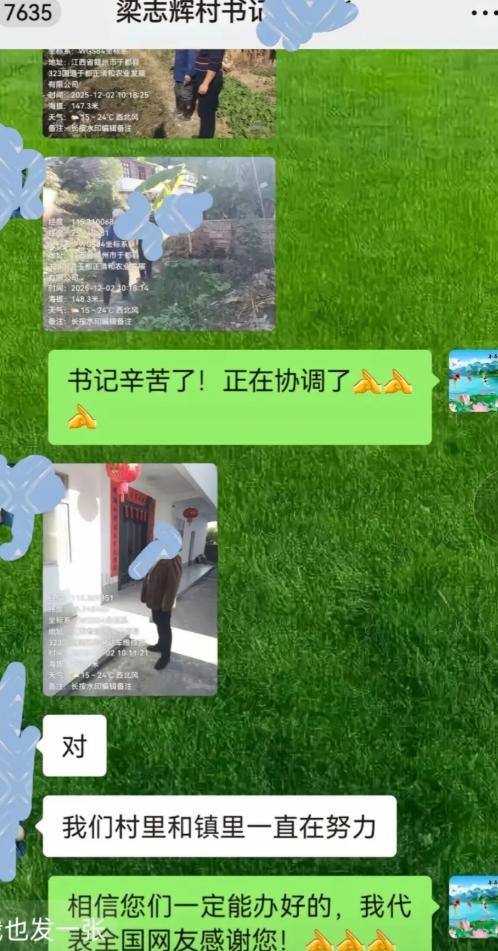 从聊天记录中,村支书表示,他们村及镇里一直在努力协调。