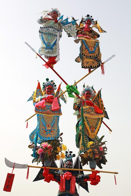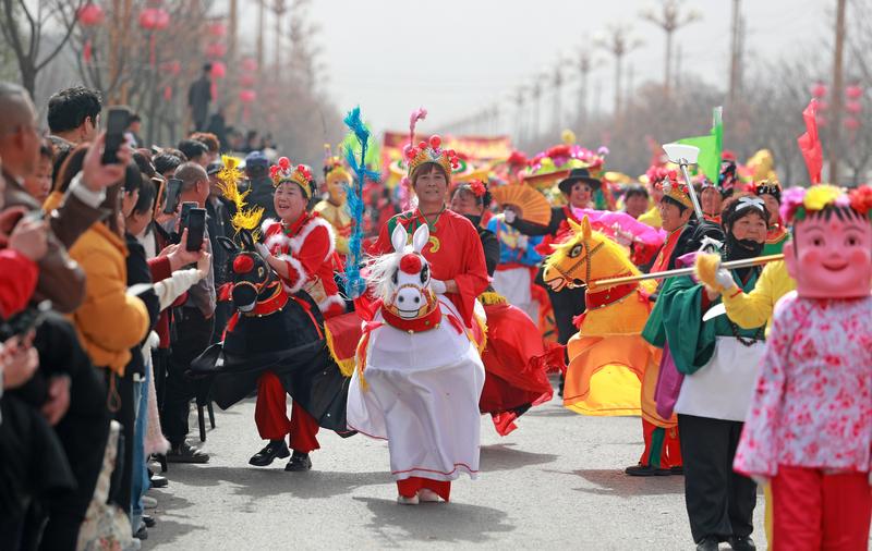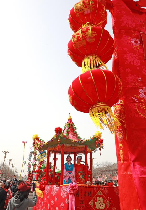 2月21日,传统芯子表演亮相华阴市非遗社火展演活动现场。